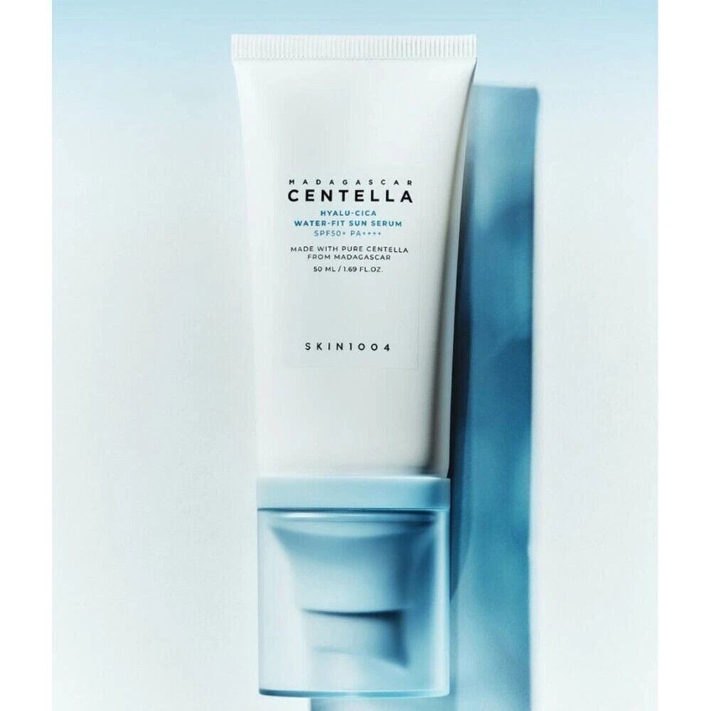 El Hyalu-Cica Water-Fit Sun Serum de SKIN1004 es un protector solar químico ultraligero que combina Ácido Hialurónico y Centella Asiática. Ofrece protección SPF50+ PA++++ mientras calma e hidrata la piel, dejándola fresca y luminosa sin sensación pegajosa.