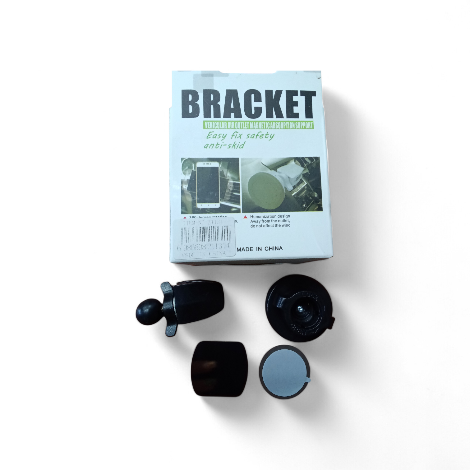 Contenido: Soporte rotativo, base de fijación y placas metálicas adhesivas.